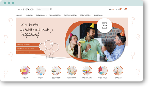 Met Keuze Kado leg je giftcards op voorraad en je waardeert ze op en reikt ze uit wanneer collega's jarig zijn. Óf je stuurt volledig geautomatiseerd een feestelijke en persoonlijke e-mail met e-voucher op de verjaardag van collega's. De giftcards worden verzilverd in jouw gratis webshop met keuze uit ruim 1500 cadeaus.